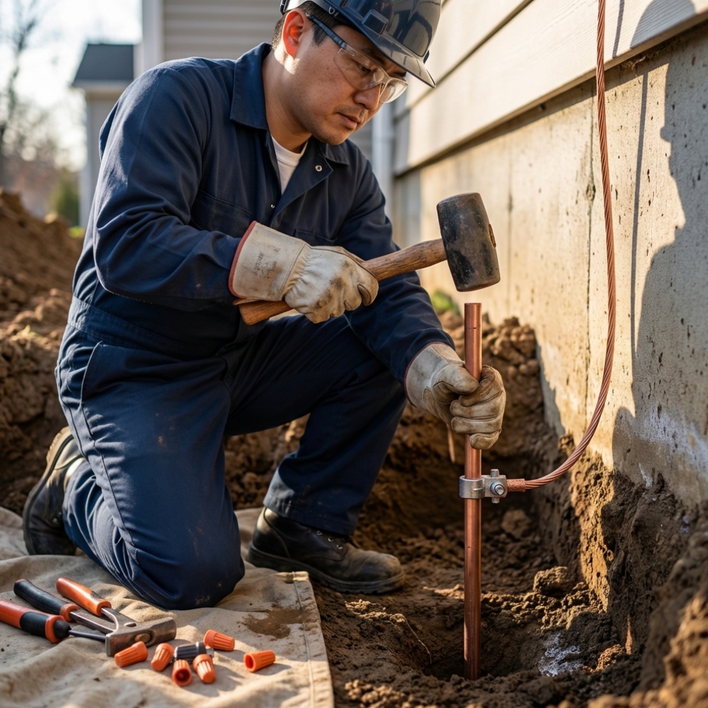 บ้านยังไม่มีสายดิน? ปกป้องครอบครัวจากไฟดูด! HOMI บริการติดตั้งระบบสายดิน, ตอกหลักดิน (Ground Rod) ตามมาตรฐานการไฟฟ้า สำหรับบ้านเก่าและใหม่