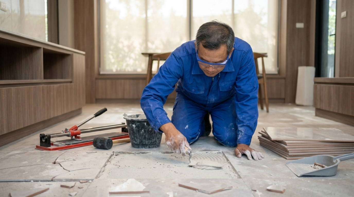 กระเบื้องพื้นหรือผนังแตก, ร่อน, ระเบิด? HOMI บริการสกัดของเก่าและติดตั้งกระเบื้องใหม่เฉพาะจุด ให้พื้นกลับมาสวยงามและปลอดภัยในการใช้งาน