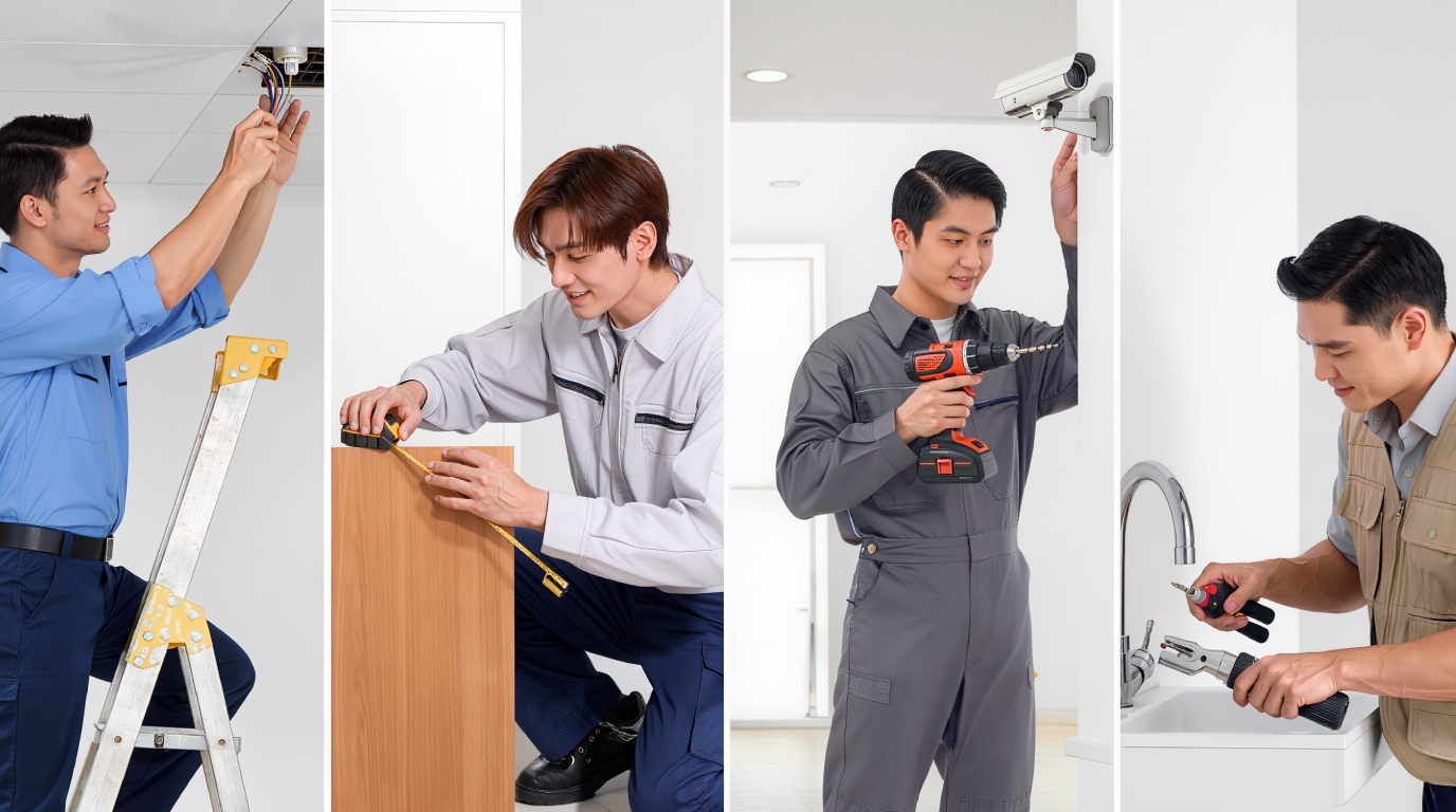 เมื่ออุปกรณ์ในบ้านชำรุดหรือถึงเวลาต้องติดตั้งของใหม่ การหาช่างที่ไว้ใจได้และทำงานมีคุณภาพอาจเป็นเรื่องน่าปวดหัว หมวดหมู่ "บริการติดตั้ง-ซ่อมแซม" จาก HOMI ได้รวบรวมช่างผู้เชี่ยวชาญในหลากหลายสาขามาไว้ให้คุณเรียกใช้บริการในที่เดียว ไม่ว่าจะเป็นงานเล็กๆ อย่างการเปลี่ยนหลอดไฟ ประกอบเฟอร์นิเจอร์ ไปจนถึงงานที่ต้องใช้ทักษะเฉพาะทางอย่างการติดตั้งกล้องวงจรปิดหรือระบบ Smart Home เราพร้อมให้บริการด้วยความโปร่งใส ราคามาตรฐาน และรับประกันคุณภาพงาน